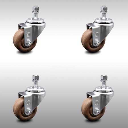 Stainless Steel High Temp Glass Filled Nylon Swivel Threaded Stem Caster Set of 4 w/3.5" x 1.25" Brown Wheels and 1/2" Stems - Includes 4 Swivel - 1400 lbs Total Capacity - Service Caster Brand