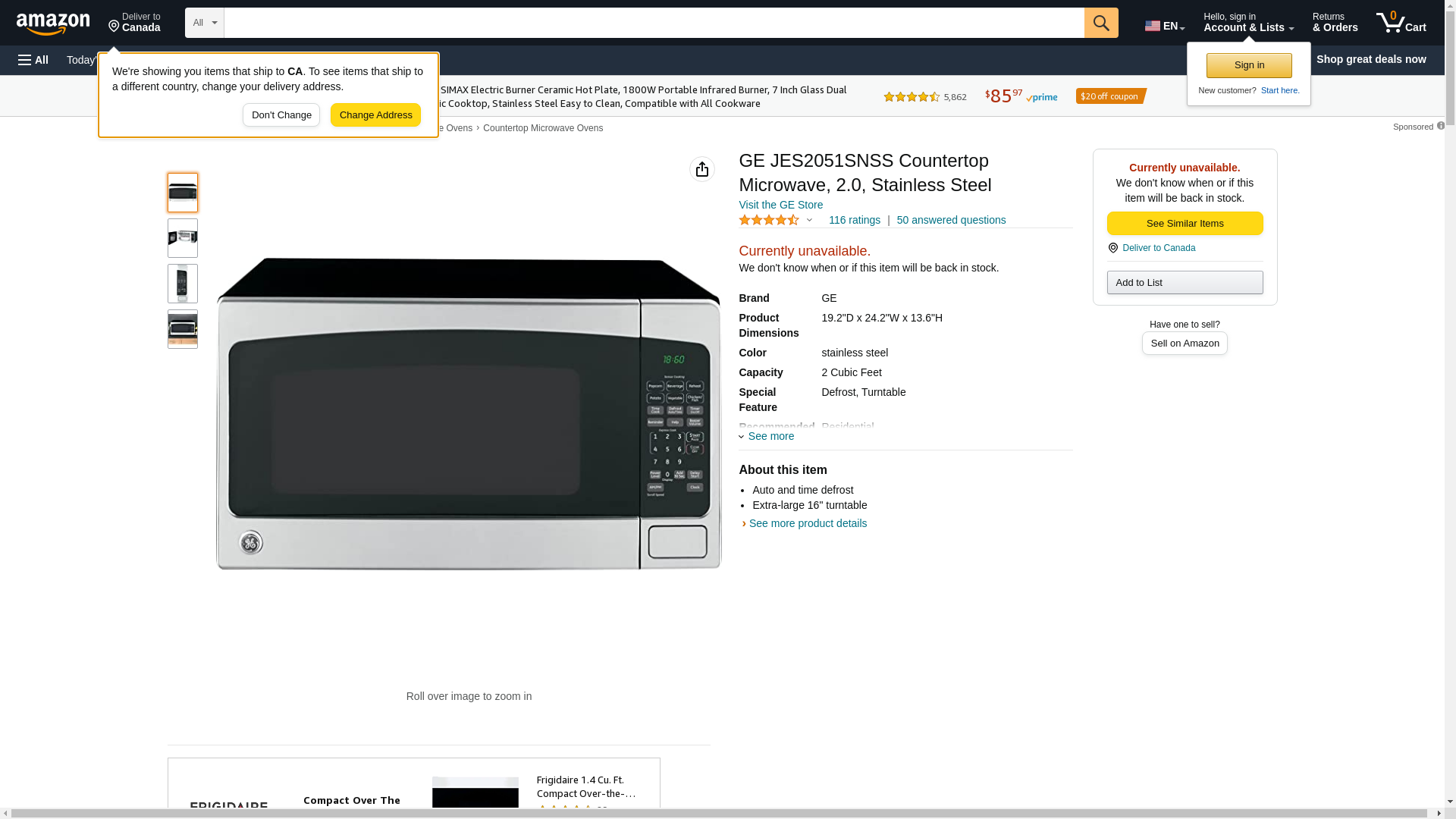 GE JES2051SNSS Countertop Microwave, 2.0, Stainless Steel