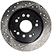 (Drilled Slotted - Right - Including Type S) Built for the (04-08) Acura TL... SportStop one-piece direct replacement rotors fit stock calipers. Drilling or slotting helps wipe away the debris that forms between the pad and the disc, adds more bite, and can help the rear brakes to match the aesthetics of a front big brake kit. The rotor finish helps prevent glazing of the pads and improves wet and dry braking performance. Most StopTech rotors have a durable black coating on the non-swept areas of the rotor to prevent unsightly corrosion. Quality is assured as the rotors are manufactured to meet or exceed all OE specifications. These direct replacement rotors are not StopTech AeroRotors. The internal vane structure is identical to stock rotors, but they are available slotted or drilled.