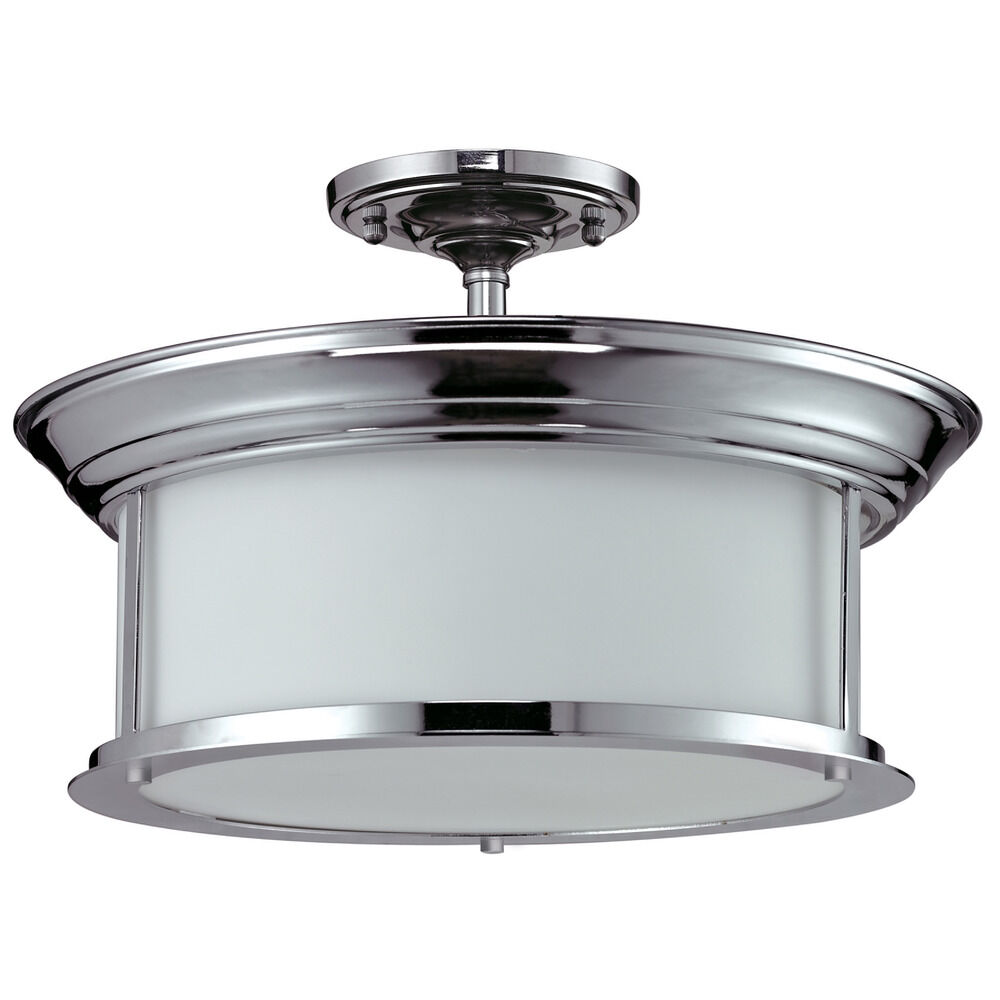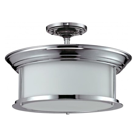 Three Light Chrome Matte Opal Glass Drum Shade Semi-Flush Mount