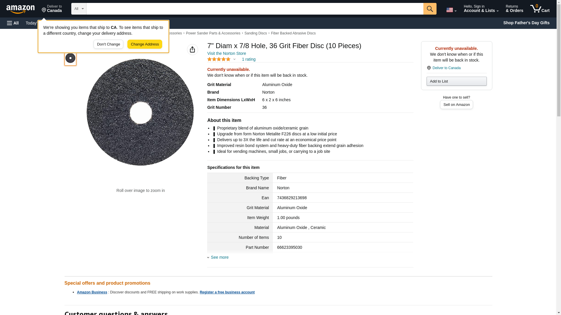| Feature | Price For: Each Backing Weight: Y Vacuum Hole Design: No Hole Item: Fiber Disc Abrasive Type: Coated Backing Material: Fiber Abrasive Material: Aluminum Oxide Disc Dia.: 7" Mounting Hole Size: 7/8" Series: Neon Max. RPM: 8600 Grit: 36 Grade: Extra Coarse Color: Black Country of Origin (subject to change): United States |