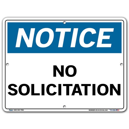 Vestil SI-N-03-B-AL-040 Notice Sign Aluminum .040" Overall Size 12.5"W x 9.5"H No Solicitation , 9.5" Height, 12.5" Wide, 0.04" Length