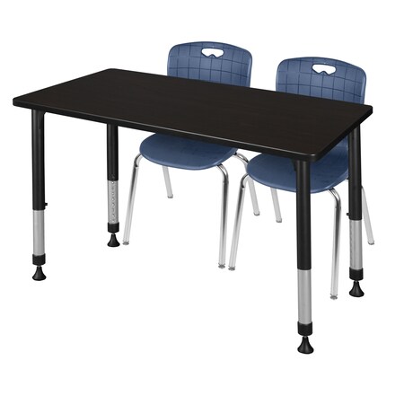 Regency Kee Height Adjustable Classroom Table Set with two 18"Andy Chairs, 48" x 24", Mocha Walnut/Navy