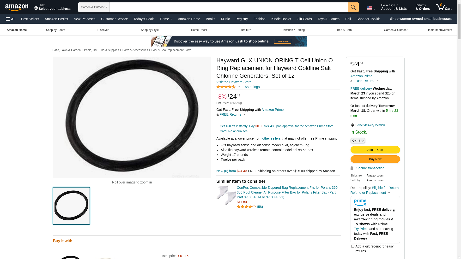 | Wild West Pool Supplies | GLX-UNION-ORING | 1 | -2 | 1 | 1 @ $18.74 |