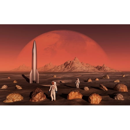 Astronauts exploring the moon of planet Mars Poster Print by Mark StevensonStocktrek Images