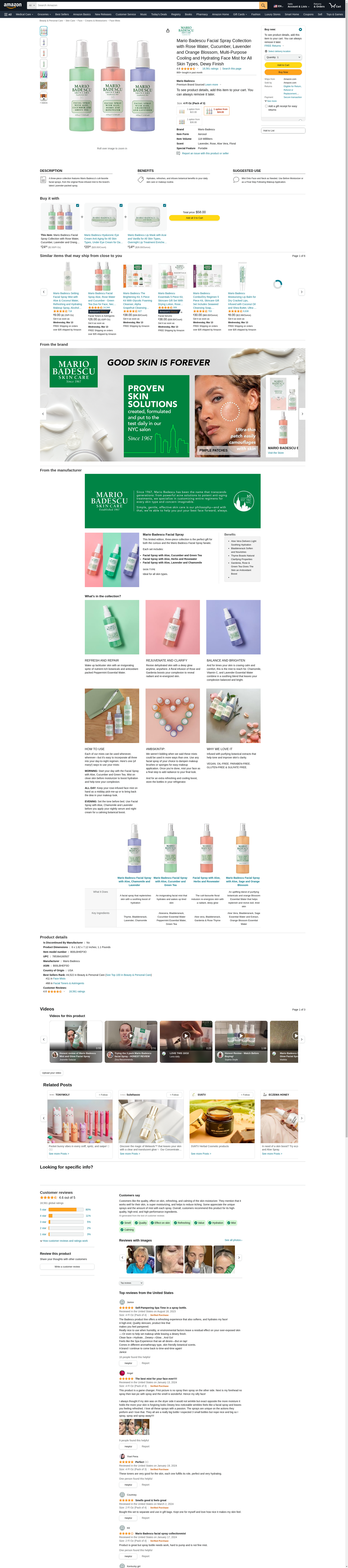 Amazon.com: Mario Badescu Facial Spray Trio - Cucumber, Rose, Lavender - Cooling, Hydrating Mists for All Skin Types : Beauty & Personal Care