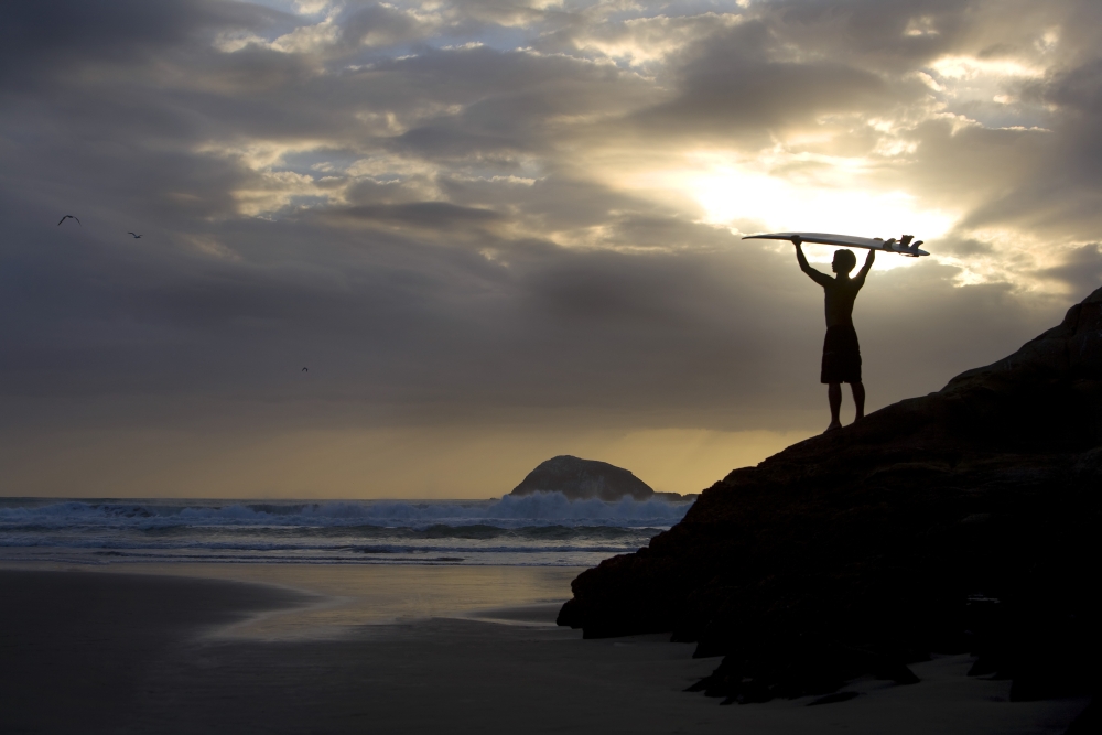 Posterazzi DPI1829393 A Surfer On Muriwai Beach New Zealand Poster Print by Deddeda, 17 x 11