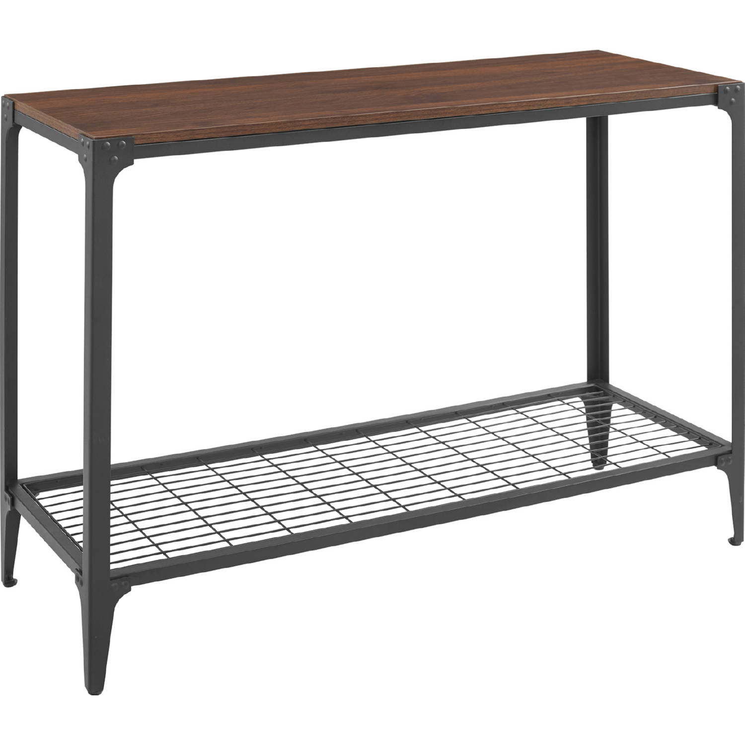 Walker Edison C44AIETDW Angle Iron 44" Rustic Console Table in Dark Walnut Finish
