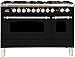 ILVE UPN120FDMPNXLP Nostalgie Series 48 Inch Freestanding Dual Fuel Range with Liquid Propane, 7 Sealed Brass Burners, Double Ovens, 4.99 cu. ft. Total Oven Capacity, Glossy Black with Chrome Trim
