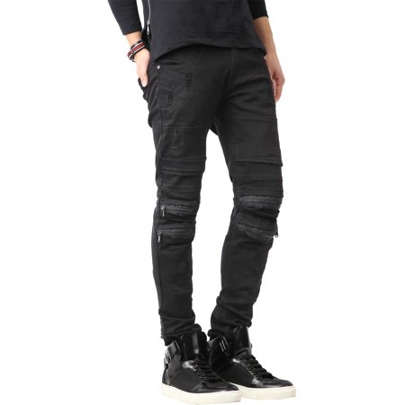 <ul> <li>Mens Distressed Ripped Stretch Denim Pants Slim Fit Zipper Biker Jeans</li> <li>98% Cotton/2% Spandex / Lightweight / Standard US Slim Fit</li> <li>Front zipper and button closures</li> <li>Fabric is soft and provides stretch for all day comfort</li> <li>Comfortable wear - Breathable, soft, and durable</li> <li>Slim fit - Modern and stylish look, great for men</li> <li>Machine wash cold inside out / Tumble dry low / Warm iron / Do not bleach</li> <li>Please be advised to see our size chart below for the accurate fit; Aware that size might slightly differ</li> <li>NOTE: COLOR MIGHT BE DIFFERENT BY EACH MONITOR AND COMPUTER</li> <li>|WARNING| Hat and Beyond is the sole distributor for this particular item and design. Please check the seller's name before placing an order. Products that are sold by other sellers are counterfeit products and these unauthentic products may have size, color, and other quality issues. We are not responsible for return or exchange if ordered from other sellers</li> </ul>