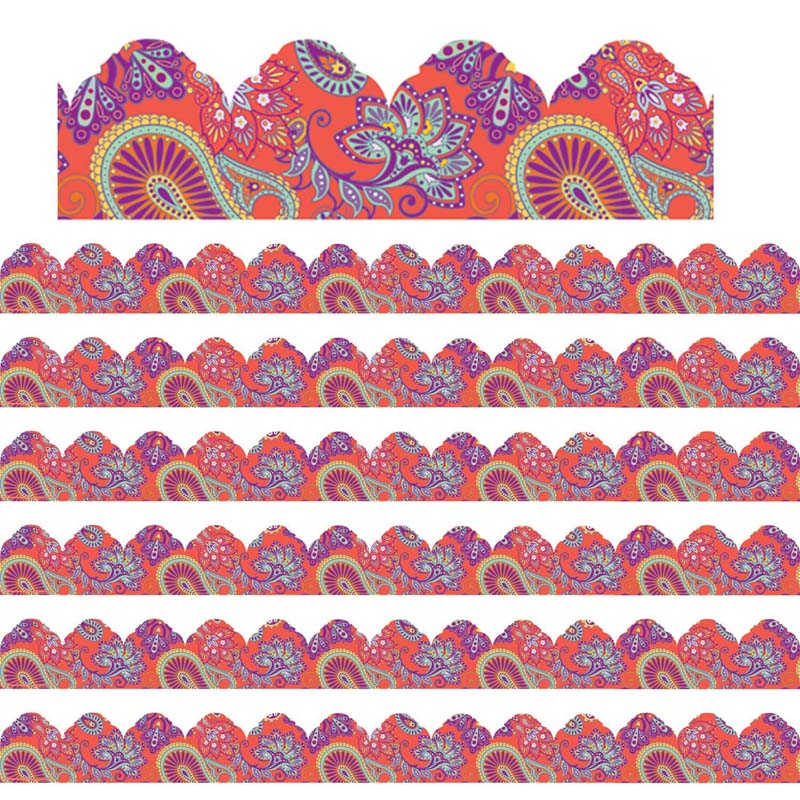 TeachersParadise - Eureka? Positively Paisley Coral Paisley Arch Deco Trim? Extra Wide Die Cut, 37 Feet Per Pack, 6 Packs - EU-845636-6