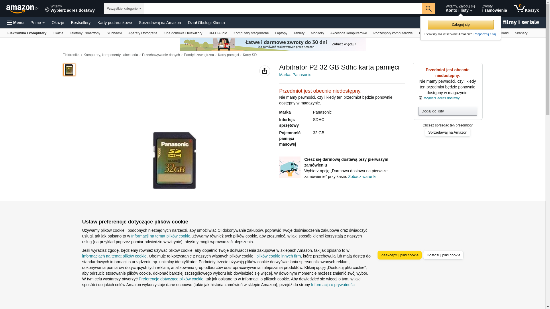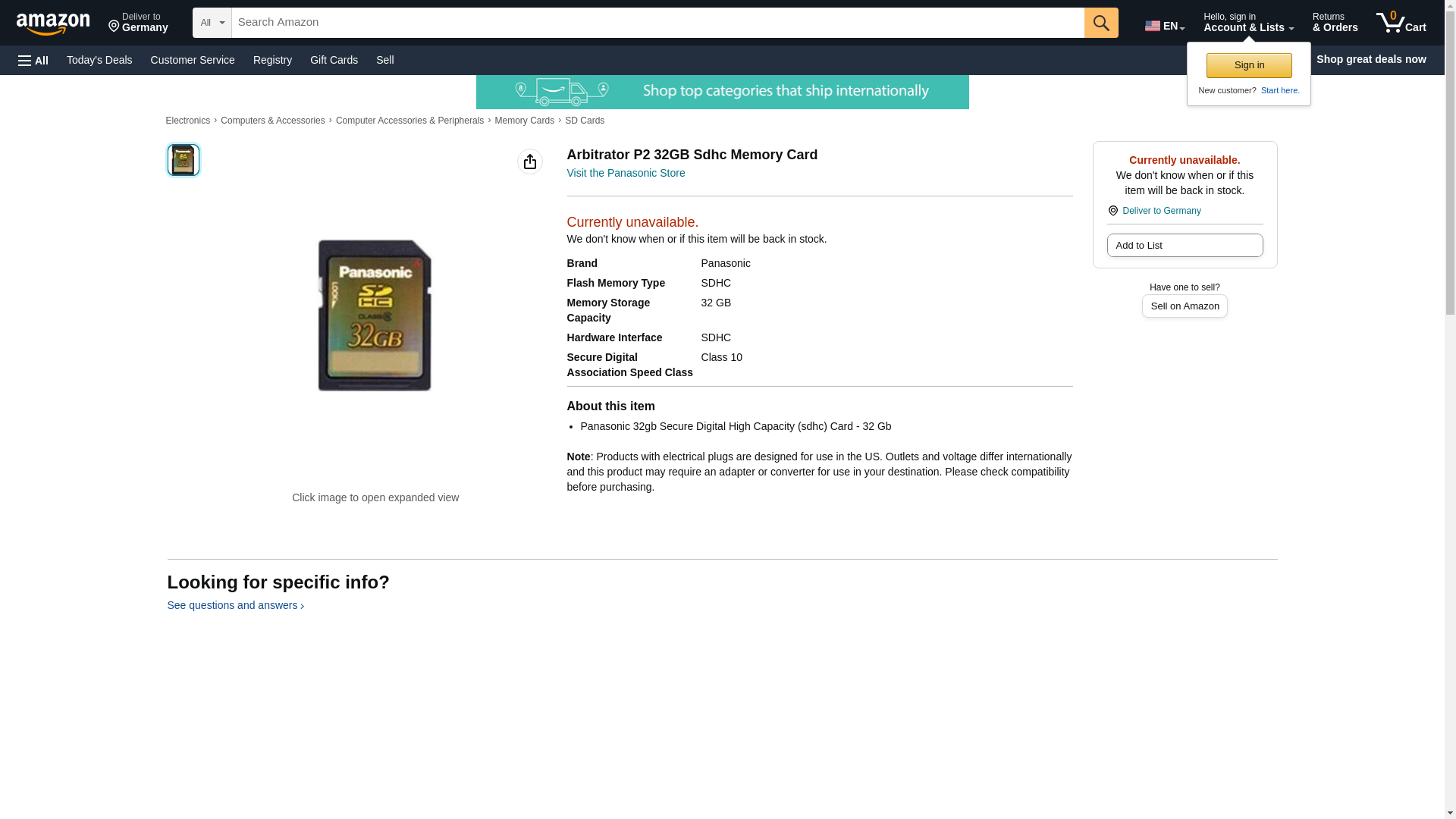 - Panasonic 32gb Secure Digital High Capacity (sdhc) Card - 32 Gb