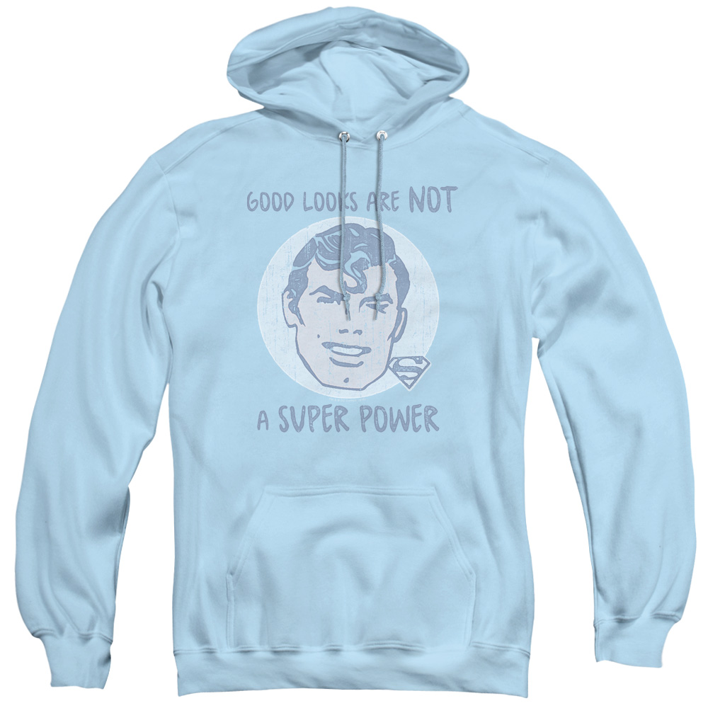 Trevco SM2203-AFTH-3 Superman & Good Looks Adult Pull Over Hoodie, Light Blue - Large