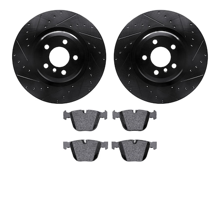 8602-31078, Rotors-Drilled and Slotted-Black with 5000 Euro Ceramic Brake Pads, Zinc Coated