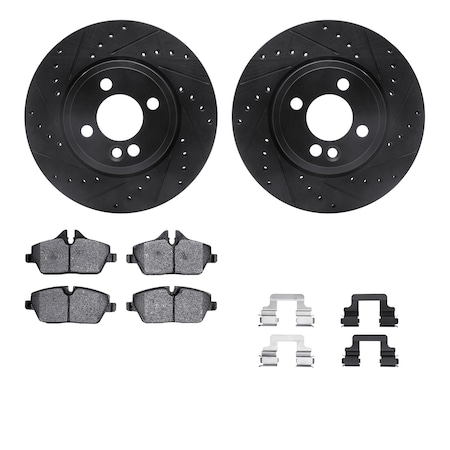 8512-32006, Rotors-Drilled and Slotted-Black w/ 5000 Advanced Brake Pads incl. Hardware, Zinc Coated