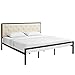 Mia Collection MOD-5184-BRN-BEI-SET King Size Platform Bed with Steel Rod Mattress Support System, Plastic Foot Glide, Power Coated Steel Frame and Fabric Upholstery in Brown Beige Color