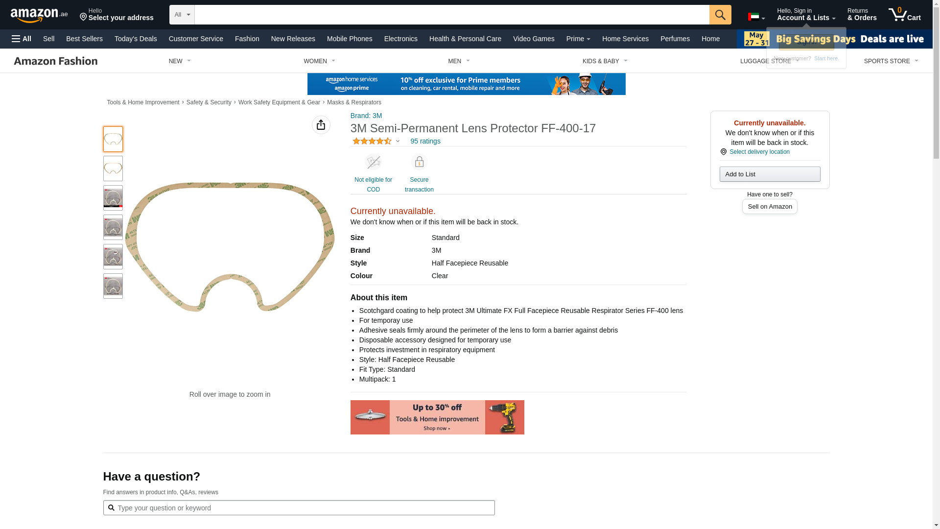 3M Semi-Permanent Lens Protector FF-400-17, Respiratory Protection Accessory (Pack of 5). Semi-permanent lens cover f...