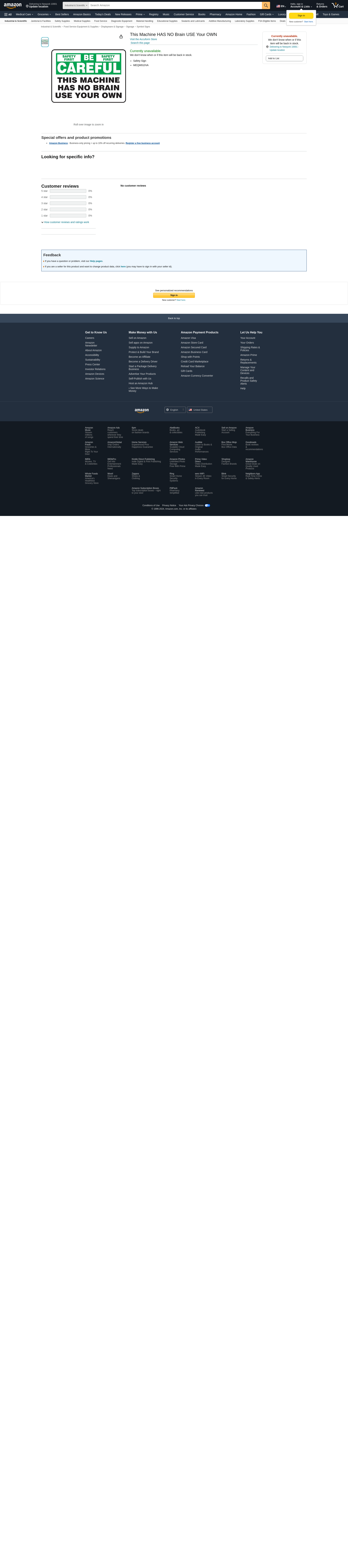 Order MEQM910VA by Accuform Sign "This Machine Has No Brain Use Your Own" - US Mega Store