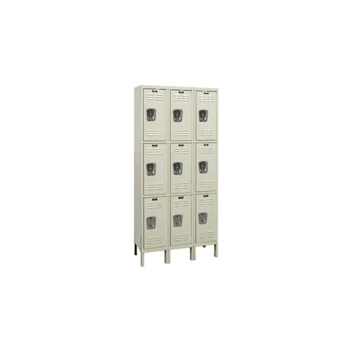 Hallowell U3258-3G-PT Parchment Galvanite Steel Rust Resistant Locker, 3 Wide with 9 Opening, Triple Tier, 36" Width x 78" Height x 15" Depth, Knock Down