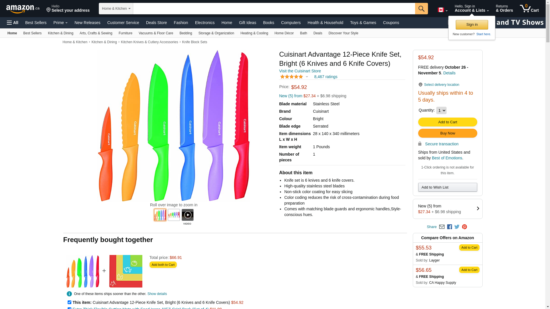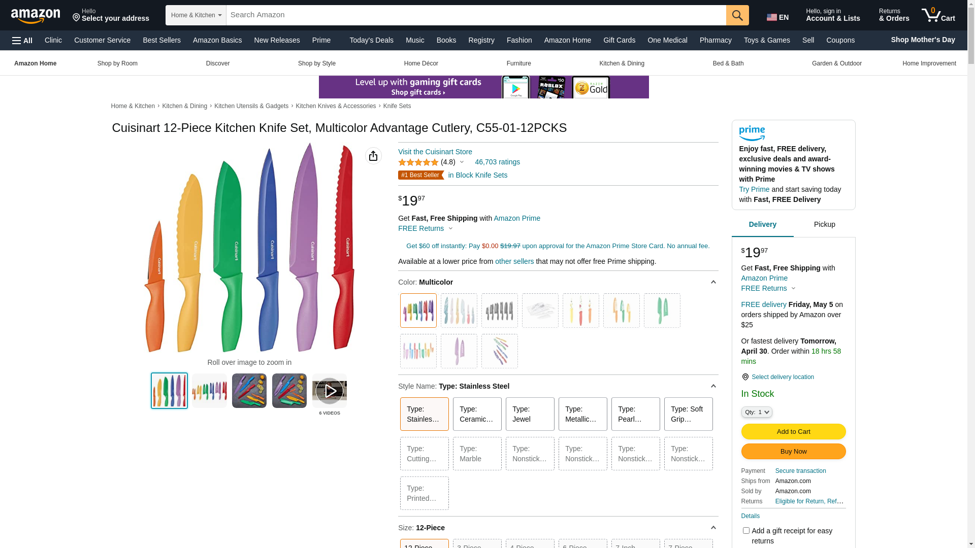 Cuisinart 12-Piece Kitchen Knife Set, Multicolor Advantage Cutlery, C55-01-12PCKS