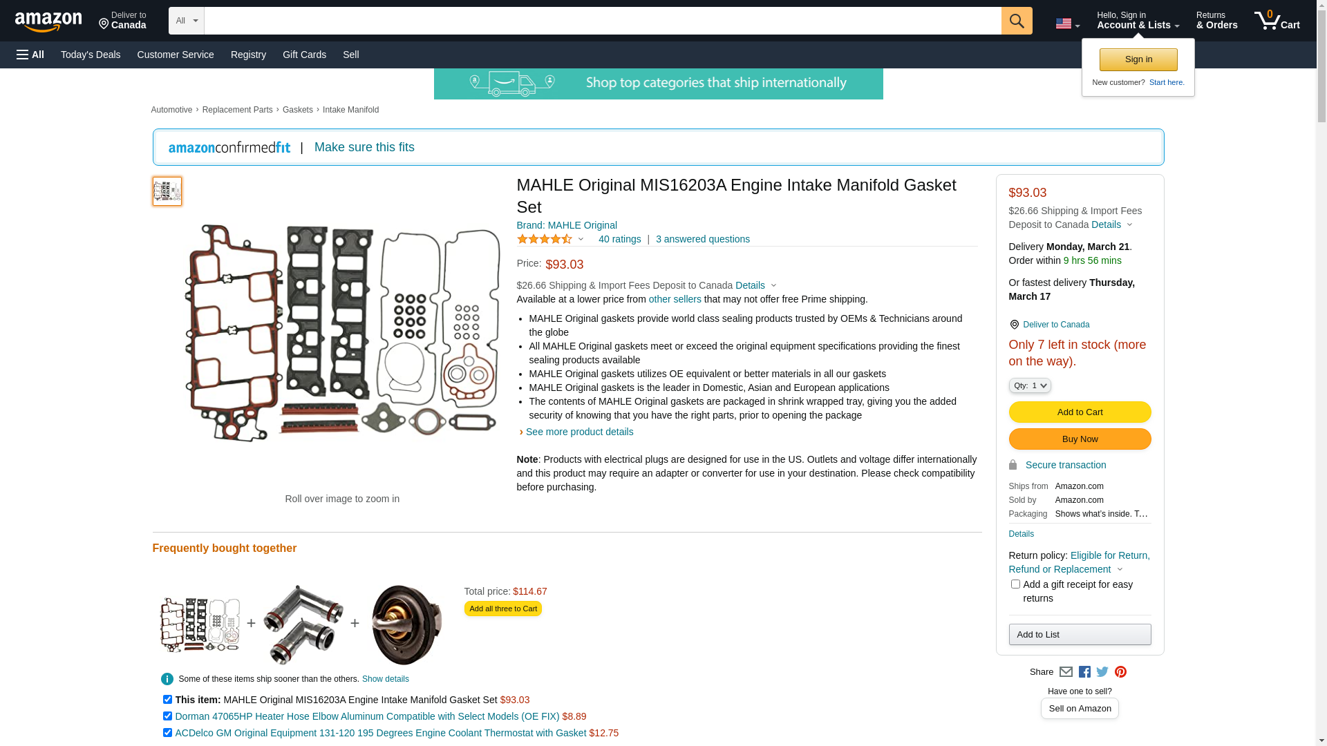 | StockWise Auto | MHL-MIS16203A | 1 | 2 | 1 | 1 @ $101.20 |