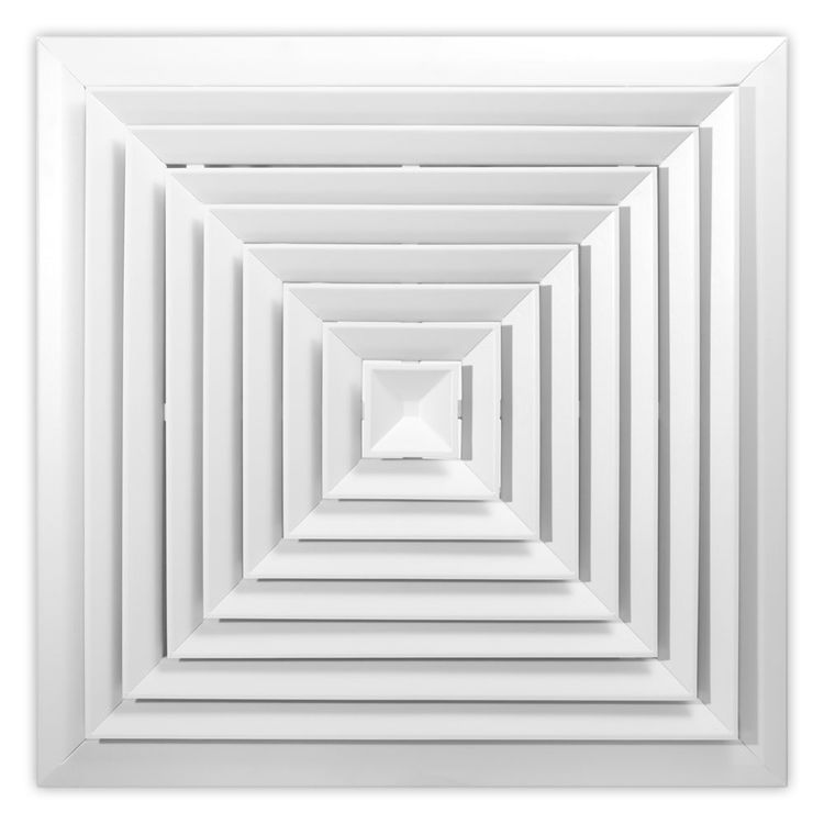 Shoemaker DVD-0-12X9 Perforated Surface Mount Diffuser from Shoemaker offers a hinged, galvanized, perforated face surface mount supply register, a ceiling mount that can be 4" larger in length and width than nominal duct sizes, and countersunk mounting