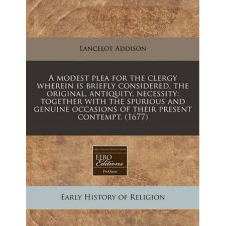 A Modest Plea for the Clergy Wherein Is Briefly Considered, the Original, Antiquity, Necessity: Together with the Spurious and Genuine Occasions of