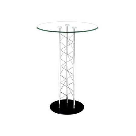 Tempered glass surface. ; Chromed steel tube center in a lattice pattern. ; Black steel base ; Assembly required.