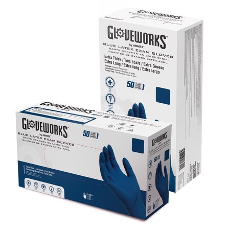 Gloveworks Latex Disposable Exam Gloves Medium Blue Powder Free , 50PK