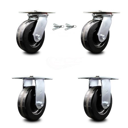 Heavy Duty Large Top Plate Phenolic Swivel Caster w/Main. Free Bearings Set of 4 w/6" x 2" Black Wheels-Includes 2 Swivel with Bolt on Swivel Lcks&2 Rigid-4800lbs Total Capacity - Service Caster Brand