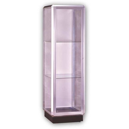 Prominence Series 446 Aluminum Frame Display Case, 24"L x 78"H x 24"D, Chrome Aluminum Frame, Plaque Fabric Display Back