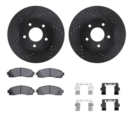 Dynamic Friction Company Front Brake Rotors Drilled and Slotted Black with Ultimate Duty Performance Brake Pads includes Hardware - 8412-47012