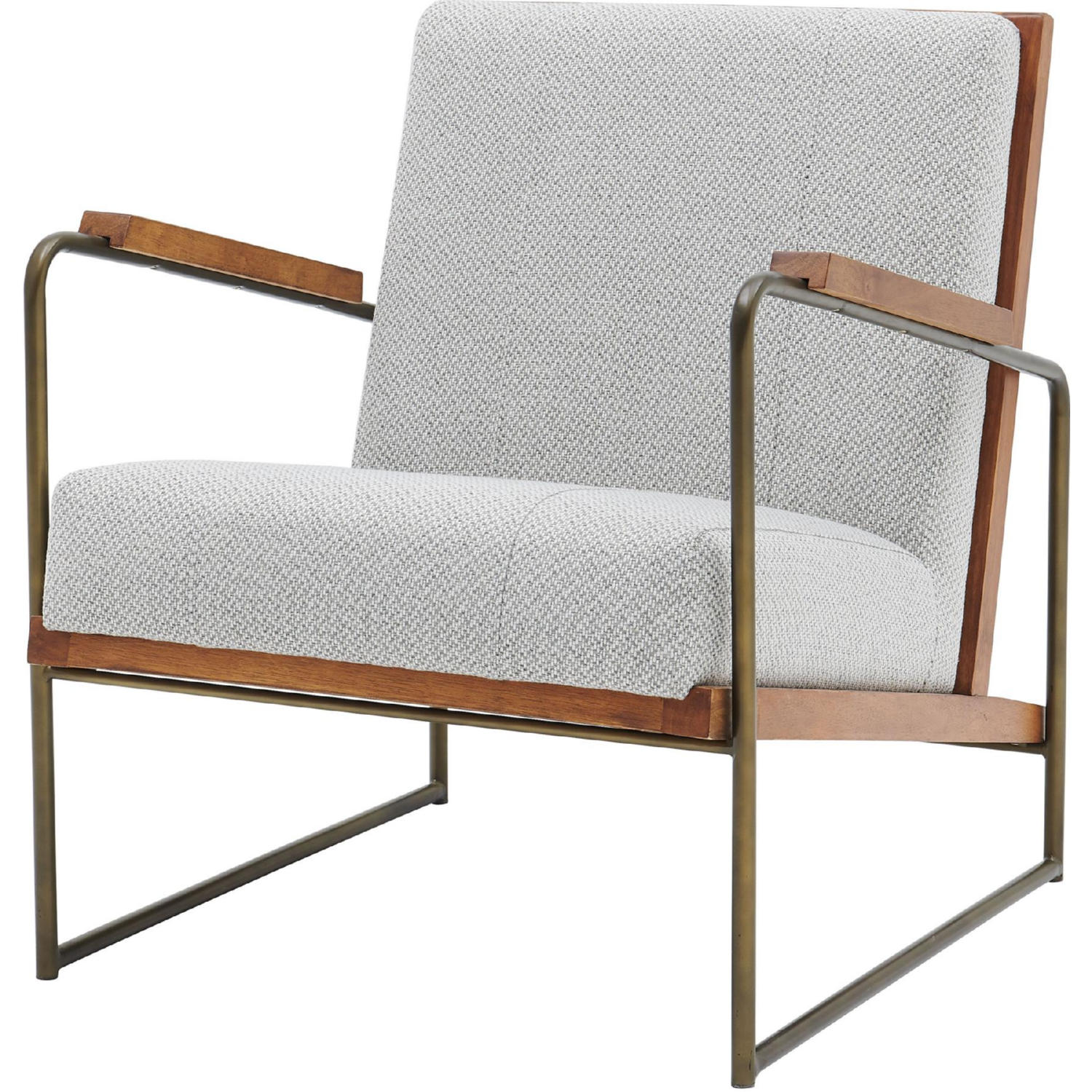 - Retro Industrial style accent chair with an Artisan appeal, highlights its wooden armrest, in the seating and back frames on Bronze color steel legs.