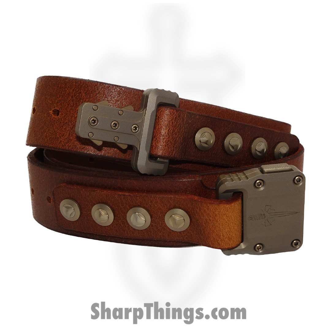 Microtech - APIS BELT 6 - APIS Belt Men's - Titanium Bronze Buckle - Water Buffalo Leather - Brown - Sharp Things OKC