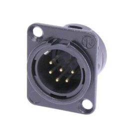 Neutrik NC6MDLB1 6-Pole Male XLR Panel Mount Connector with Black Metal Housing and Gold Contacts