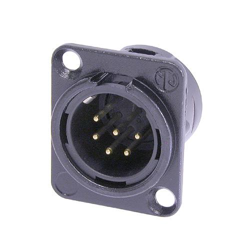 NC6MDLB1 6-Pole Male XLR Panel Mount Connector with Black Metal Housing and Gold Contacts