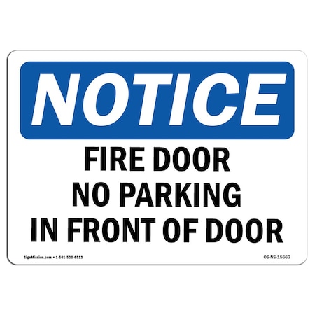 OSHA Notice Sign - NOTICE Fire Door No Parking In Front Of Door | Aluminum Sign | Protect Your Business, Work Site, Warehouse & Shop Area | Made in the USA