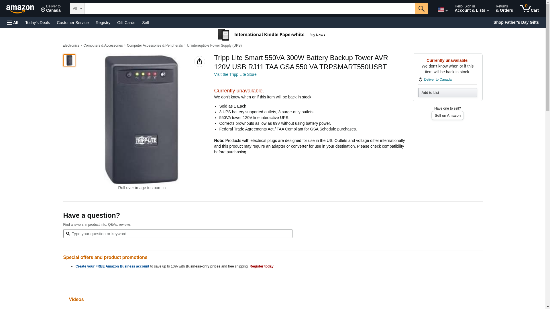 Tripp Lite Smart 550VA 300W Battery Backup Tower AVR 120V USB RJ11 TAA GSA 550 VA TRPSMART550USBT