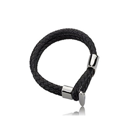Edforce Stainless Steel Braided Genuine Leather Bracelet with Toggle Clasp, 8" Inches