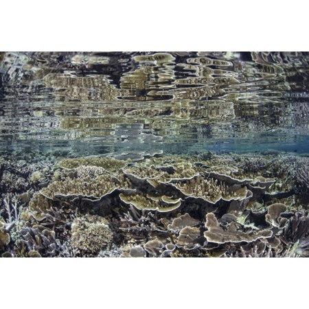 Fragile corals grow in shallow water in Komodo National Park Poster Print