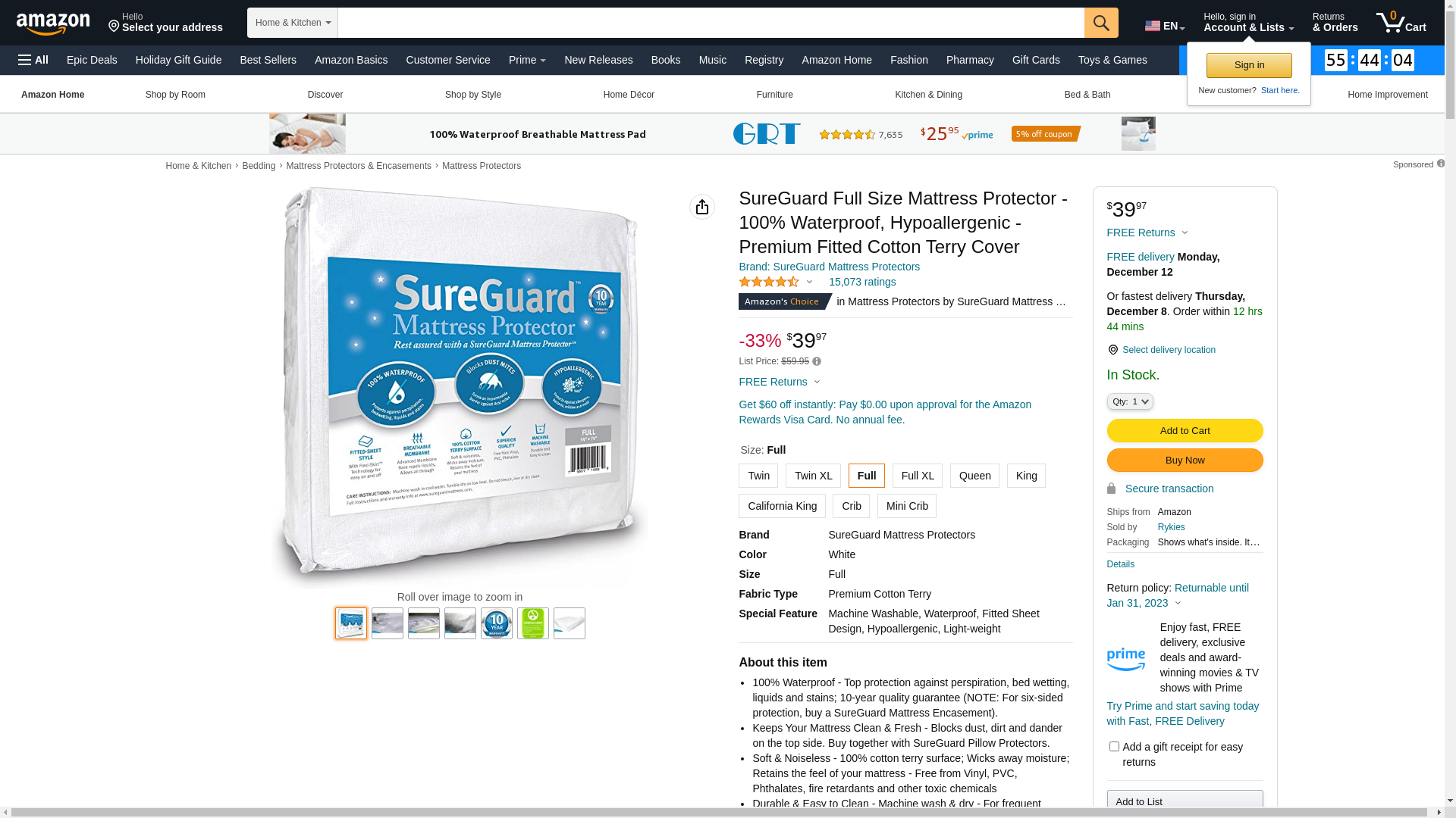 Brand: SureGuard Mattress Protectors