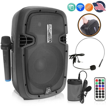 - 5 INPUTS: Pyle bluetooth speaker karaoke PA system is equipped w/ USB /SD card reader to serve as an MP3 player, RCA, two 1/4” microphone input for karaoke, and FM radio. Comes w/ handheld and headset microphone, transmitter, and power cable