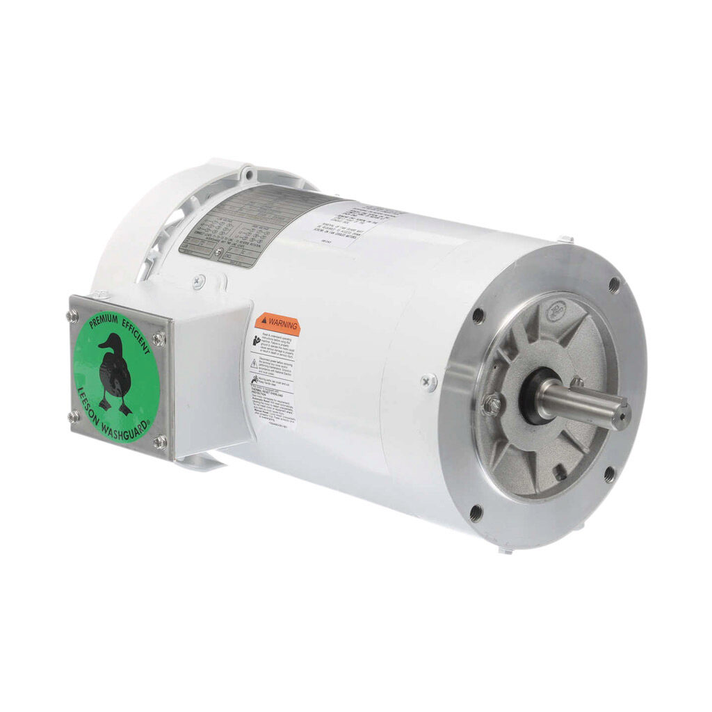 Leeson 119469.00 C Face Epoxy Painted Washguard Motor, New EISA Compliant Model Number, 1.5 hp, 1800 RPM, 56C Frame, TEFC, 230/460V, 3 pH, 60 Hz, White