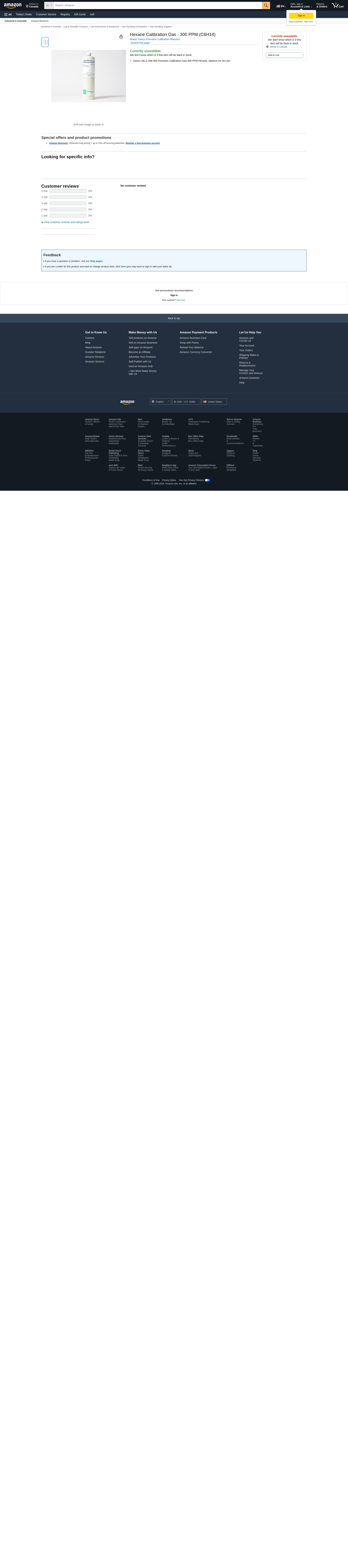 0, 34LS-289-300 Hexane, 300 PPM, 34 Liter Cylinder, Balanced Air