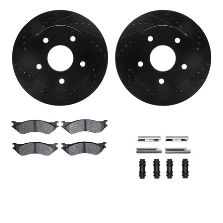 Dynamic Friction Company Front Brake Rotors Drilled and Slotted Black with Ultimate Duty Performance Brake Pads includes Hardware - 8412-40008