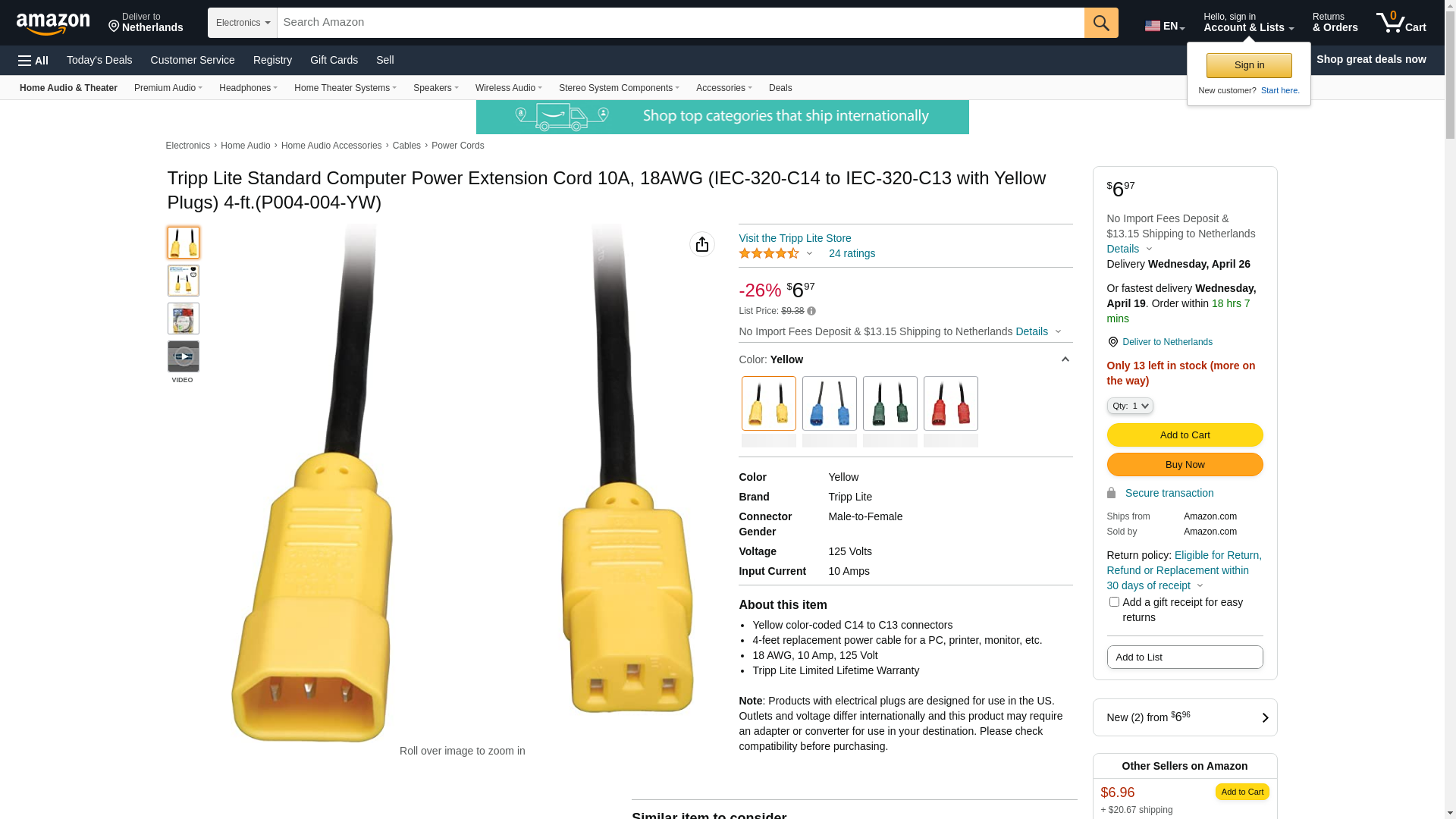 Amazon.com: Tripp Lite Standard Computer Power Extension Cord 10A, 18AWG (IEC-320-C14 to IEC-320-C13 with Yellow Plugs) 4-ft.(P004-004-YW)