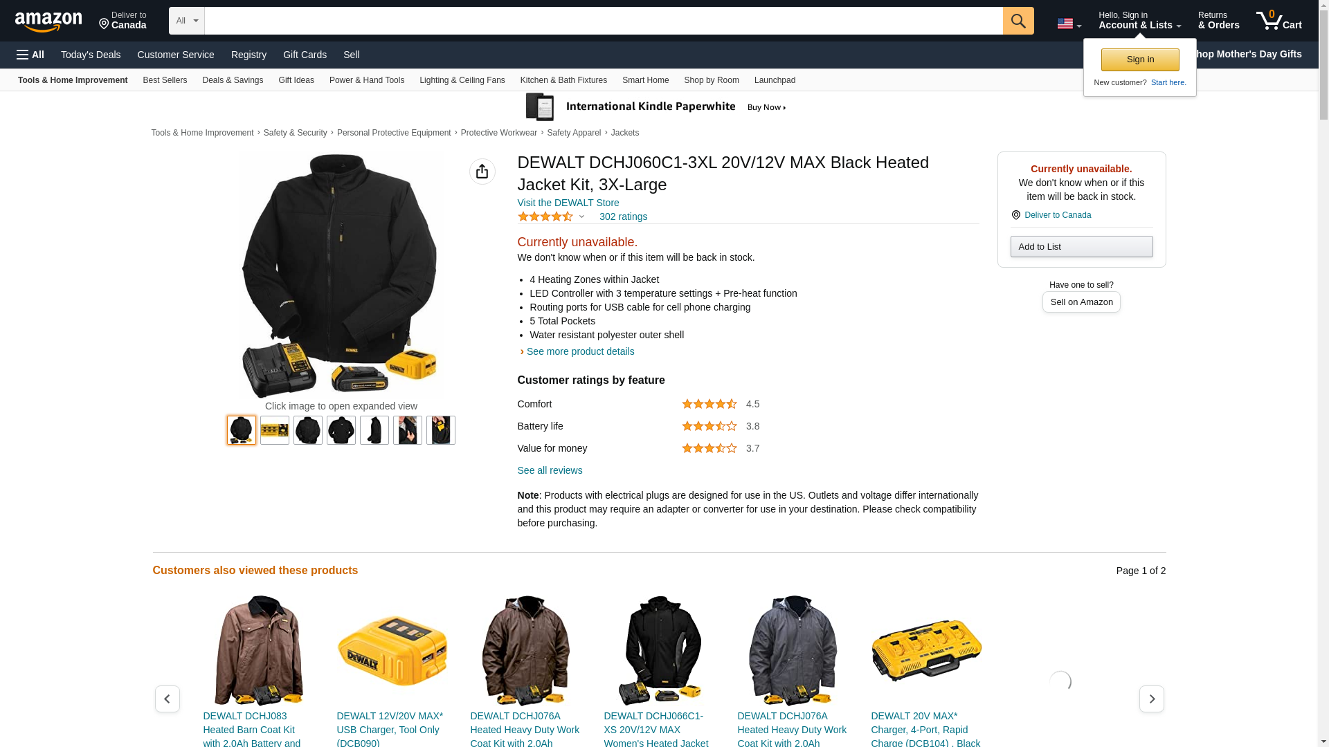 DEWALT DCHJ060C1-3XL 20V/12V MAX Black Heated Jacket Kit, 3X-Large