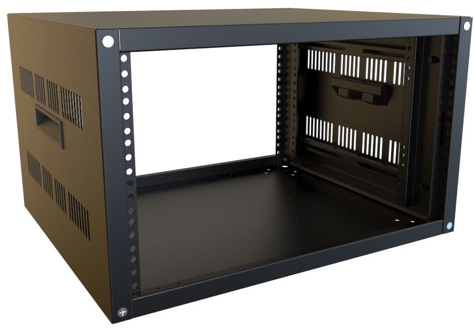 VENTED RACK CASE 10 X 17.5 OVERALL DIMENSIONS: HEIGHT 12.50in/ WIDTH 21in/ DEPTH 17.50in Usable Mounting Dimensions: Height 10.50in/ Width 19in/ Depth 16.25in Rack Units: 6U Included clip nuts 16. Shipping Weight 40lb (18.2kg) Simple assembly using one bolt in each corner to lock the sides to the top and bottom (hardware included). Front & back lip is .585" (14 mm) so usable depth is reduced by 1.17" (30 mm). Tested to nearly double the suggested load rating of 800 lbs. Rugged textured powder paint finish. Knockdown design ships unassembled for easy handling and shipping protection. RoHS Compliant. Manufactured in North America. Panel rails are infinitely adjustable (front to back), round hole punched for 10-32 clip-nuts to full EIA hole centers. Includes two pairs of rails (for rear support of heavier equipment or shelves),