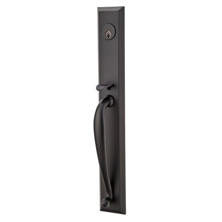 Emtek F133352RBLUS19RH212 Ribbon And Reed Lever Right Hand with Single Cylinder Middleton Mortise Handleset 2-1/2" Backset with F13 Function Body Flat Black Finish