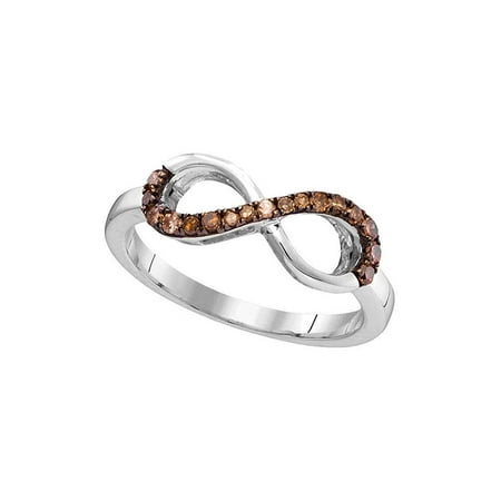 10kt White Gold Womens Round Cognac-brown Colored Diamond Infinity Ring 1/5 Cttw. Combined diamond weight of 1/5 carats total weight represents a range of 0.18 - 0.22 cts. t.w.